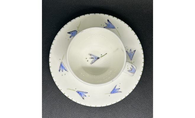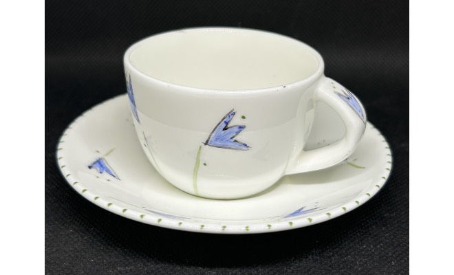 Gedeck aus fine bone china, handbemalt frei wie der Pinsel läuft. Die Malerei ist bei 850 Grad spülmaschinenfest eingebrannt.