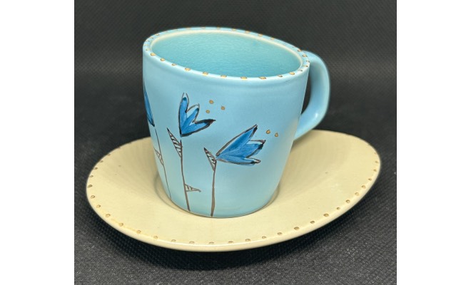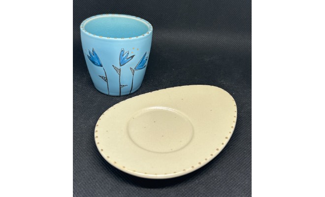 Gedeck aus Keramik, handbemalt frei wie der Pinsel läuft. Die Malerei ist bei 850 Grad spülmaschinenfest eingebrannt.