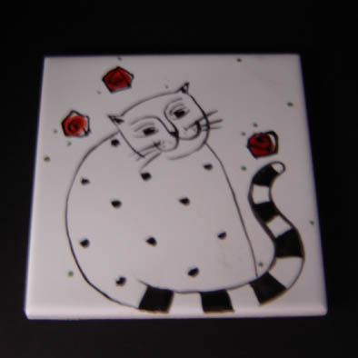 Die Kachel / Fliese besitzt kleine Füßchen aus Kork und kann somit auch als Tischset verwendet werden.