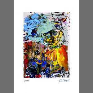 „Das Schweigen der Waffen II“ Vorzugsgraphik mit Buch „Bumskanone, Rasselsäbel und Krachgewehr“