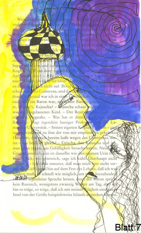 Romanübermalung (Roman von Viktor Jerofejew) auf Vorsatzpapier