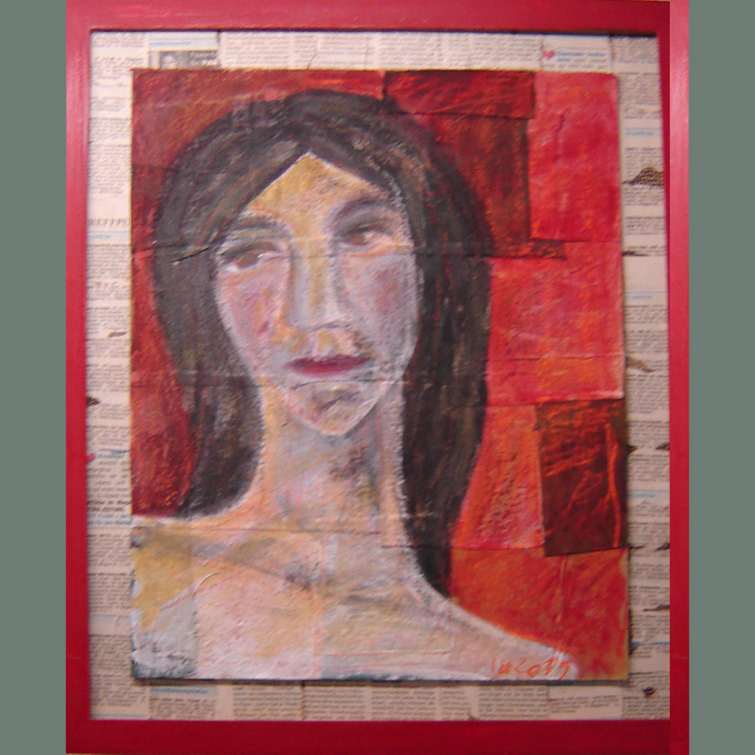 Übermalte Materialcollage mit Zeitungsannoncen (43 x 53 cm)