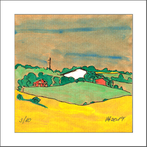 Handkolorierter Druck im Schrägschnittpassepartout (20 x 20 cm)