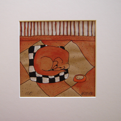 Handkolorierter Druck im Schrägschnittpassepartout (23 x 23 cm)