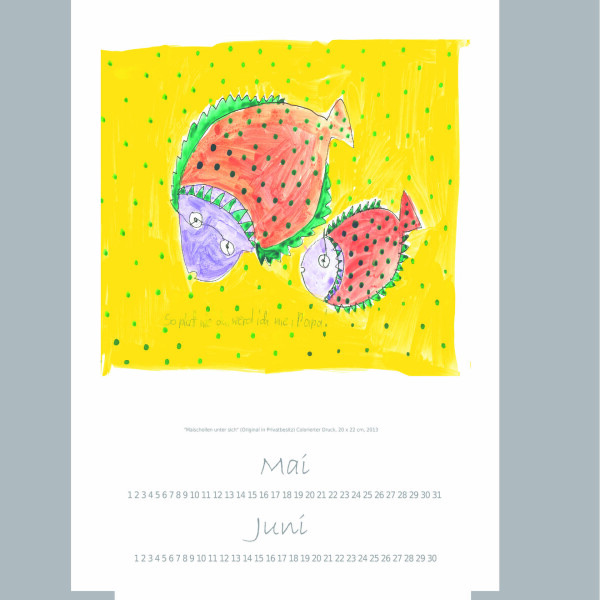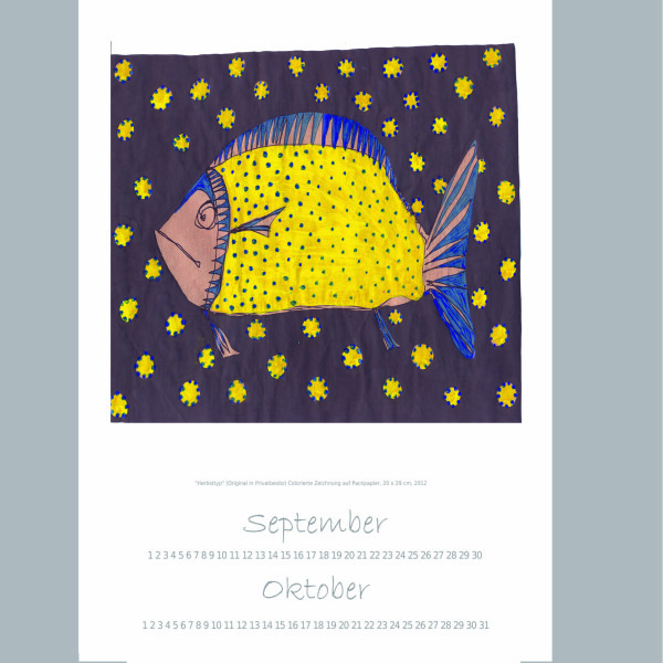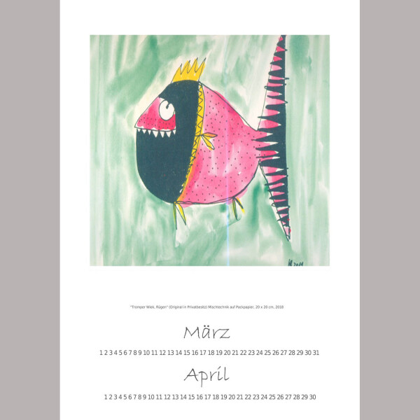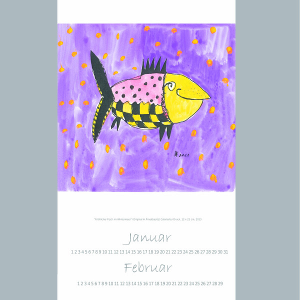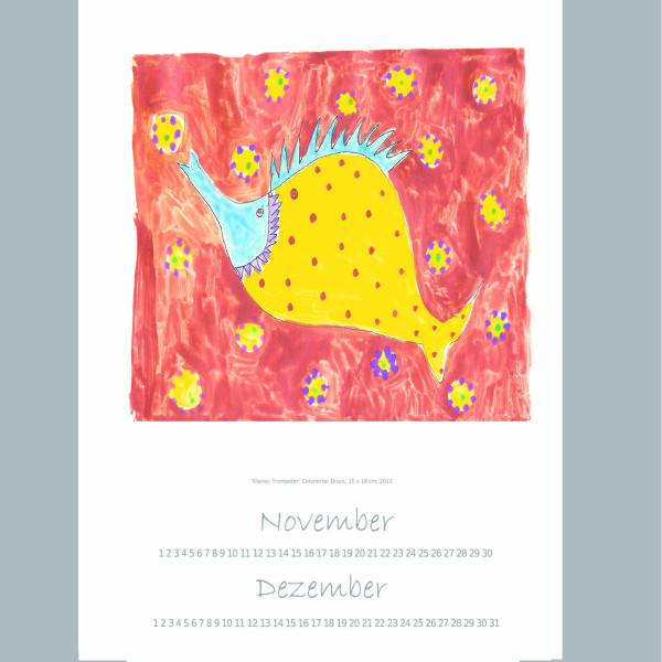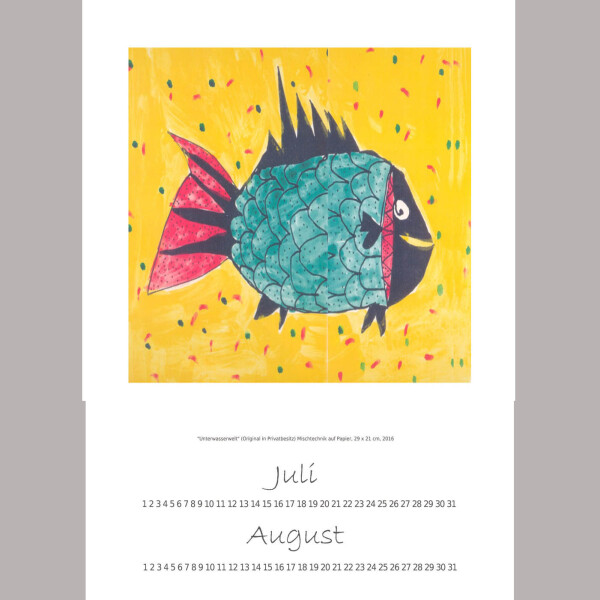 7 Blatt in Kunstdruckqualität mit aufgelegtem schwarzen Passepartout, das sich über jedes Monatsblatt legen lässt