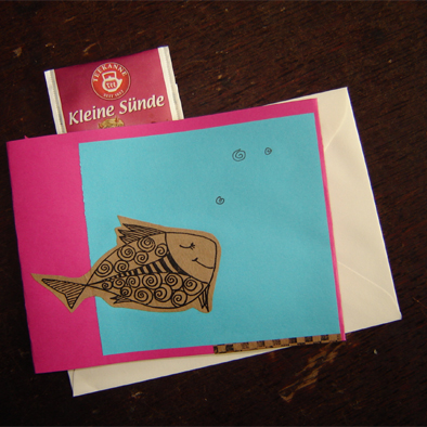 Klappkarte im A6-Format mit Falter zum Beschreiben, Umschlag und einer Früchteteemischung.