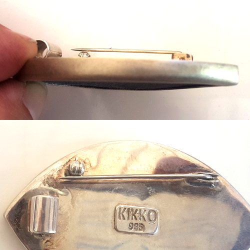 Handwerklich wunderbar gearbeitetes Schmuckstück aus Horn. Die in Sterlingsilber eingefasste Brosche, kann auch als Kettenanhänger getragen werden.