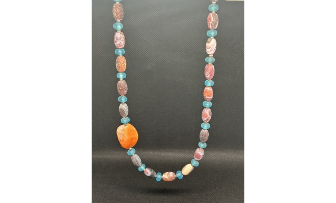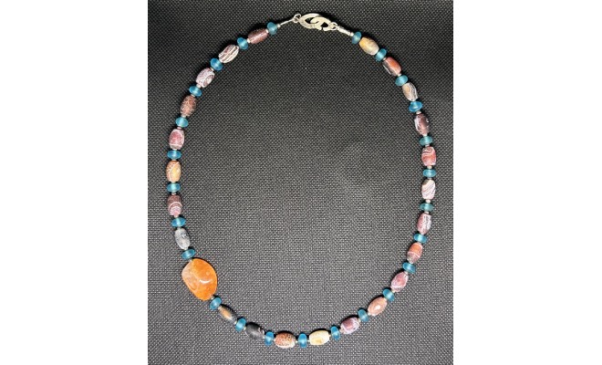 unikate Kette mit Achat, Glas, Karneol, Silber 54 cm lang