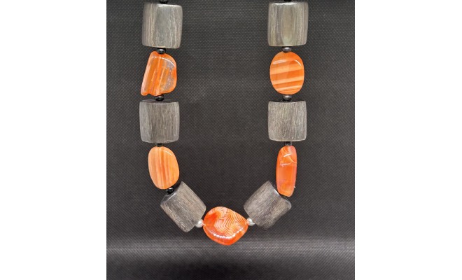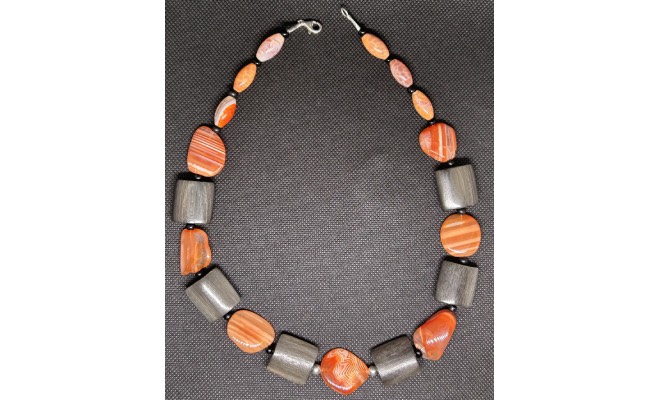 unikate Kette mit Botswanaachat, Horn, Karneol, Silber 48 cm lang