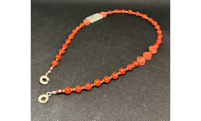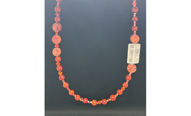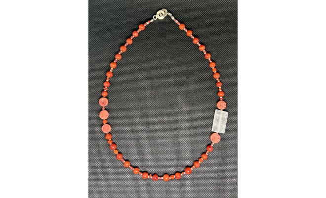 unikate Kette mit Koralle, Glas, Silber 42 cm lang
