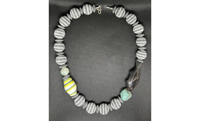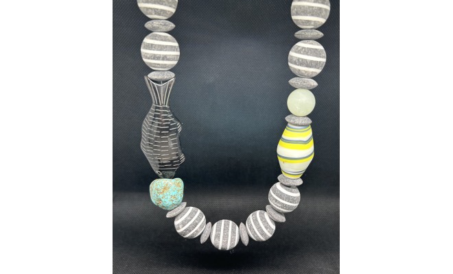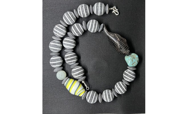 unikate Kette mit Horn, Türkis, Glas, Jaspis, Silber 58 cm lang