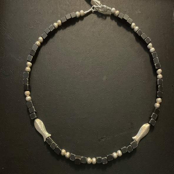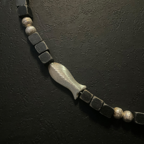 unikate Kette, ca 45 cm lang aus Holz und Sterlingsilber … eine spannungsreiche Kombination