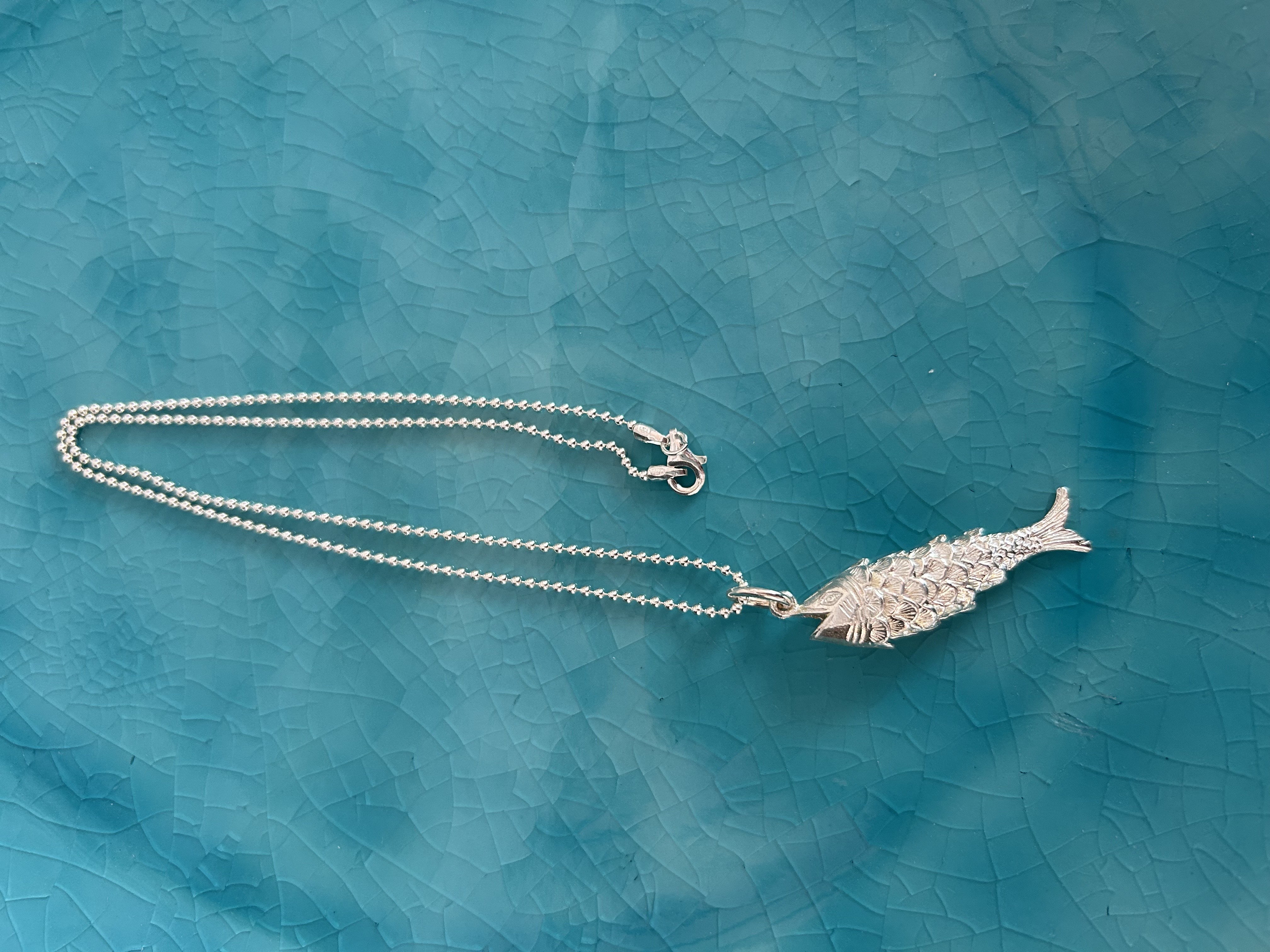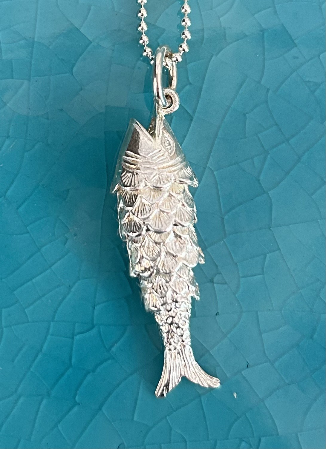 Anhänger aus Silber, ca 4,5 cm lang mit Öse, Durchmesser 0,6 cm