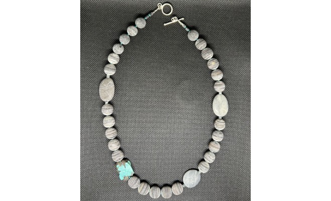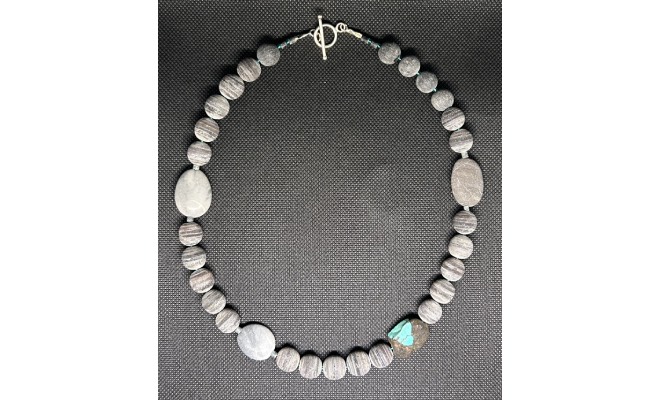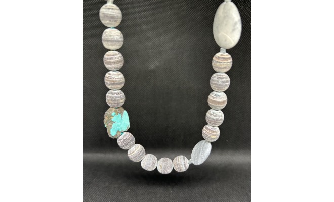 unikate Kette mit Türkis, Glas, Horn, Stein, Silber 50 cm lang