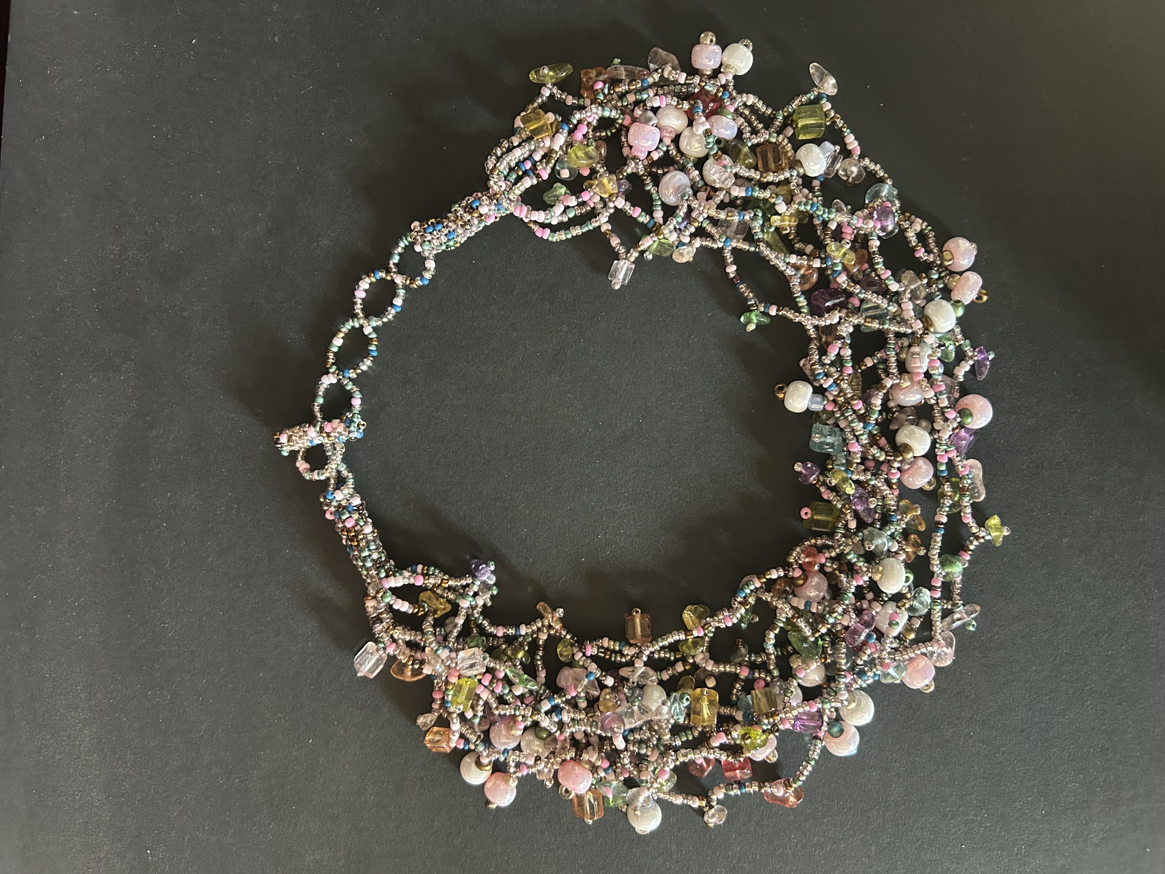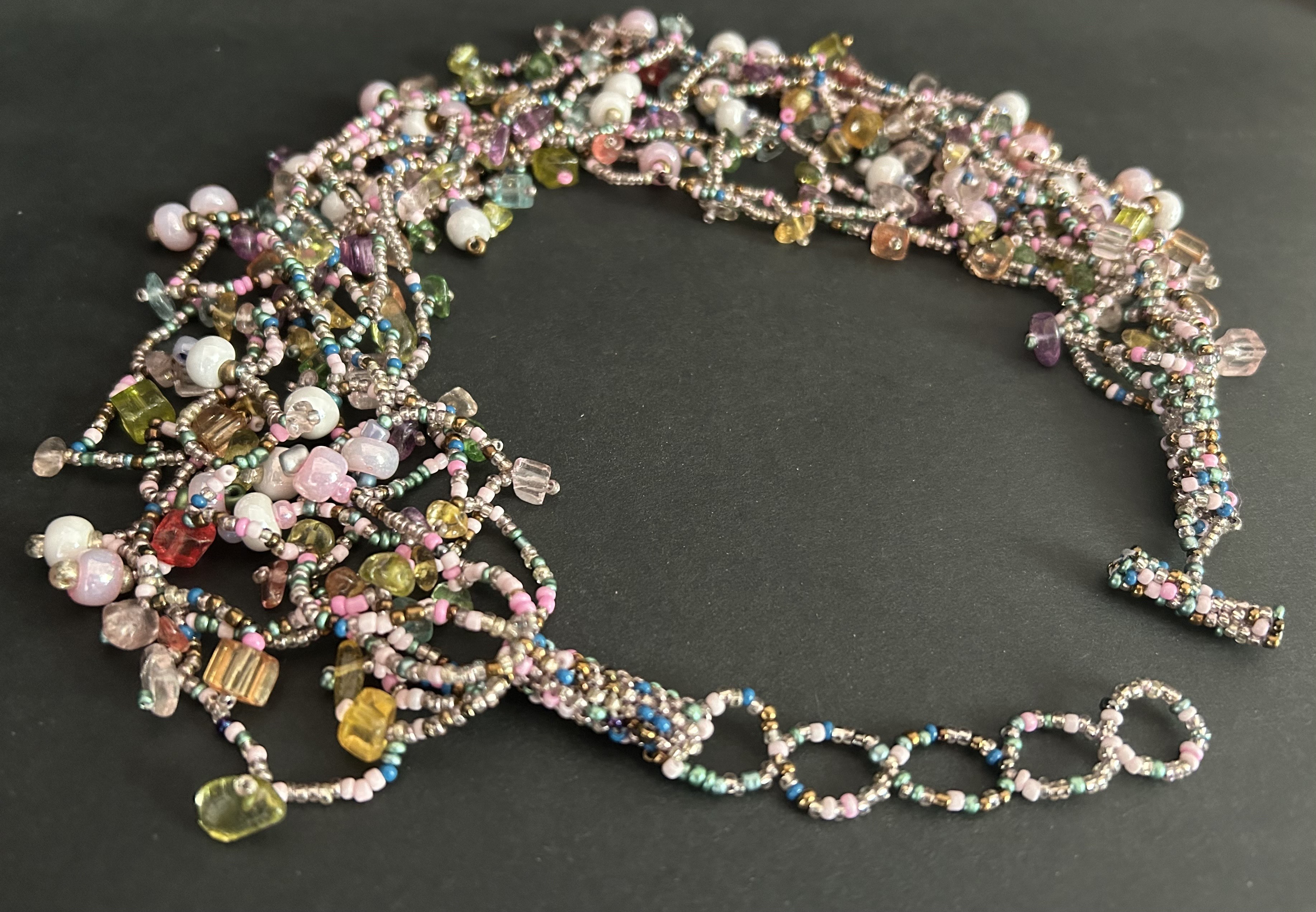 unikate Kette, ca 52 cm lang aus Glas und vielen unterschiedlichen Steinen