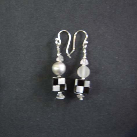 unikate Ohrhänger, ca 6 cm lang, Perlmutt, Glas, Bergkristall und Sterlingsilber