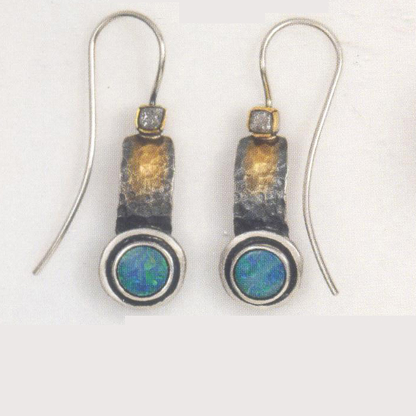 Ohrhänger Silber teilplattiert und teilgeschwärzt mit Opal und Rohdiamant