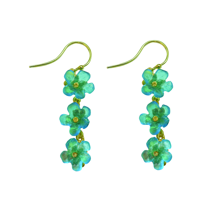 - patiniert mit 24k Gold auf Bronze mit Sterlingsilber und gegossenen Glasblüten (Türkis)