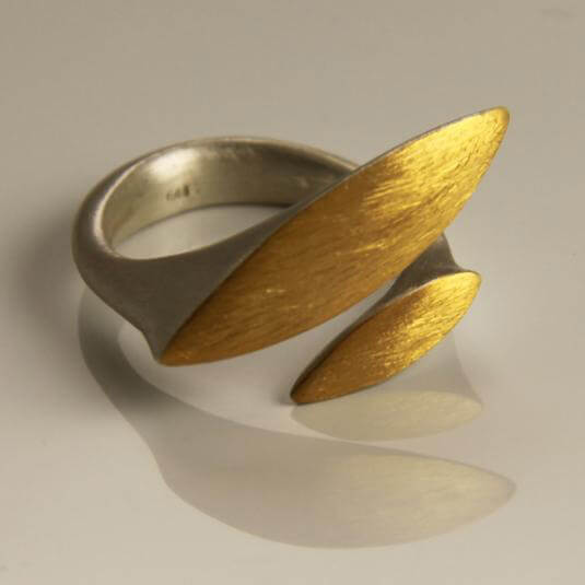 „2 Ellipsen“ Silberring teilgoldplattiert ca. 28 mm