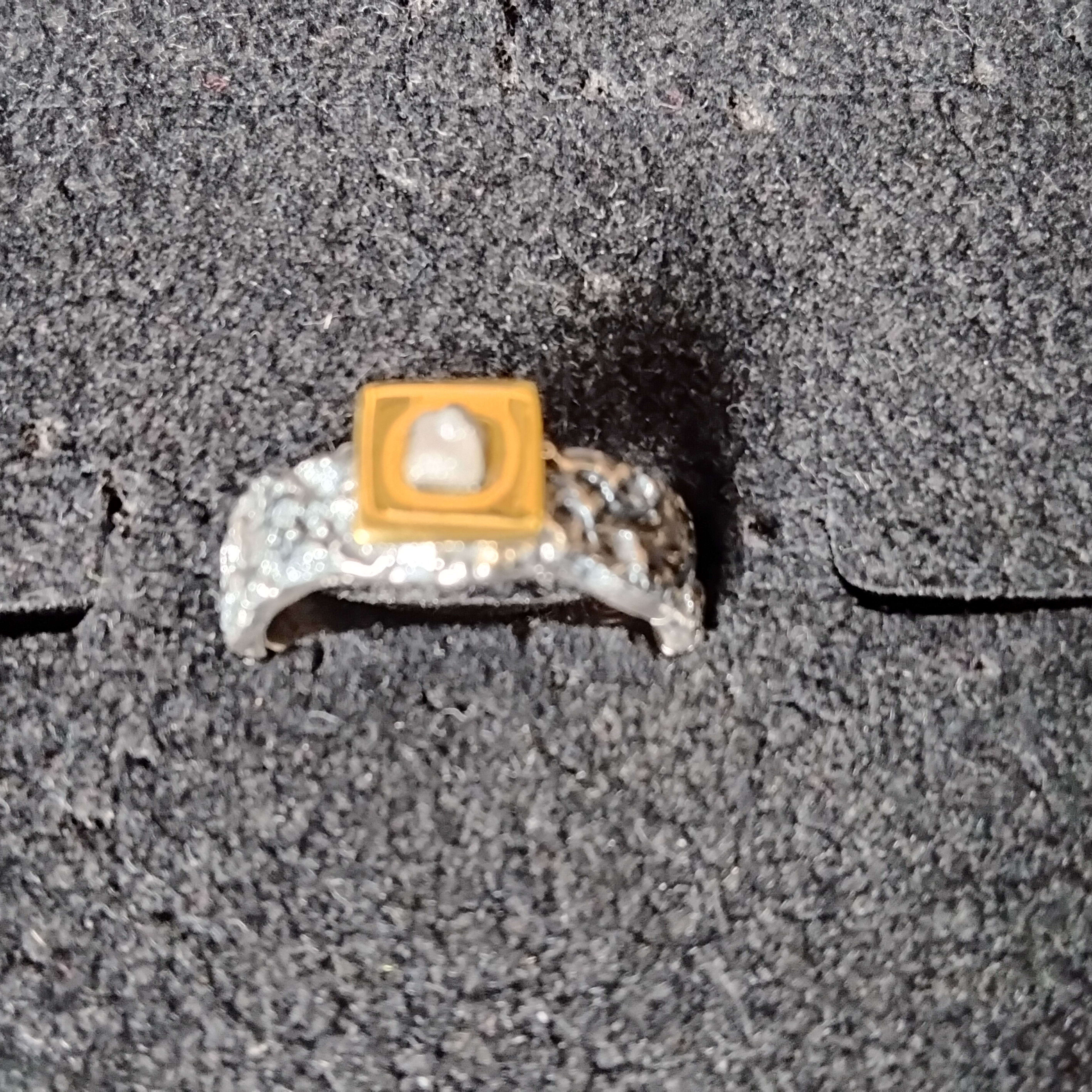 „Rohdiamant“ Silberring teilvergoldet, teilgeschwärzt