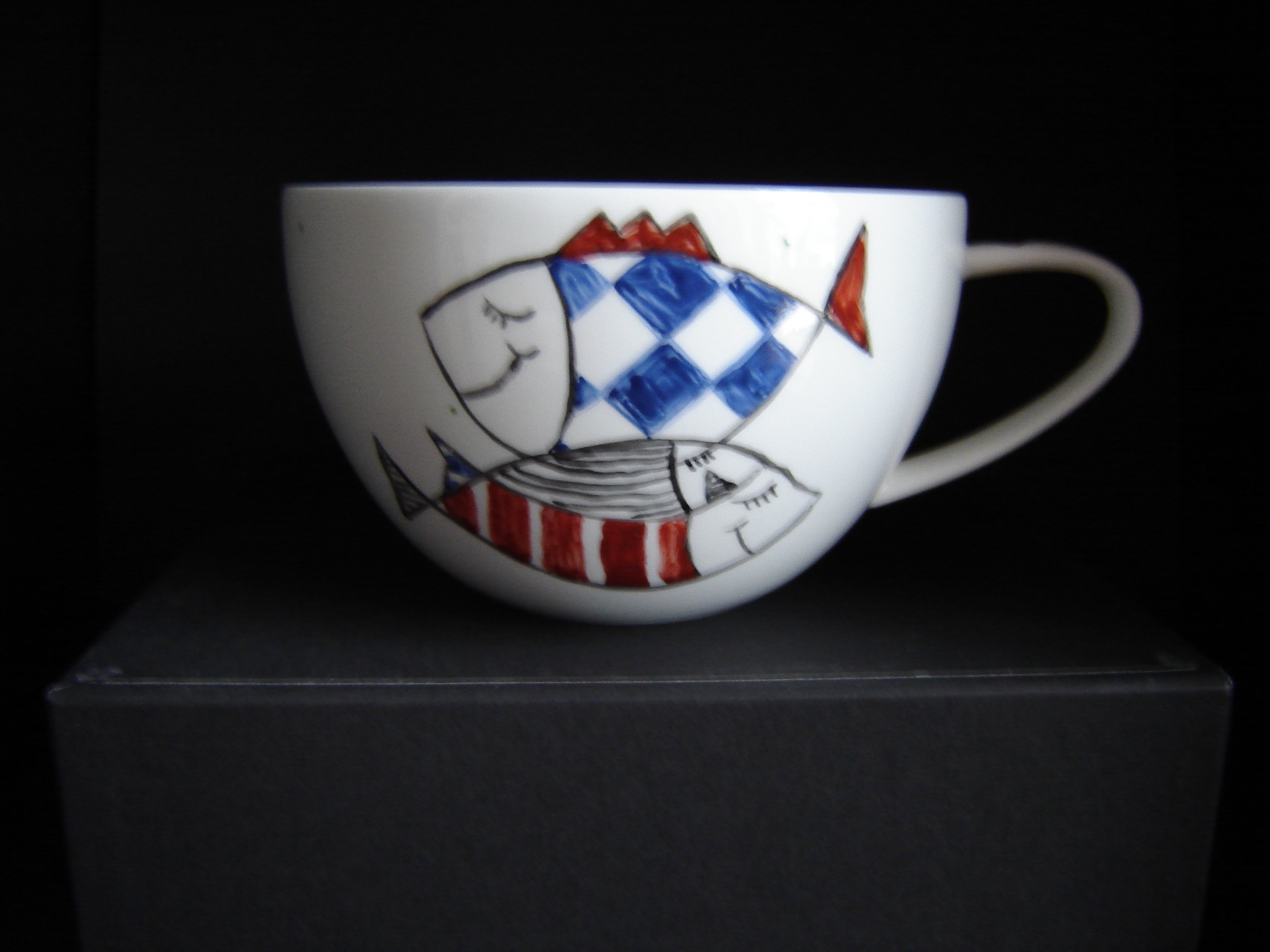 Jede Milchkaffeeobere ist handbemalt und das Motiv somit immer kleinen Veränderungen unterworfen.