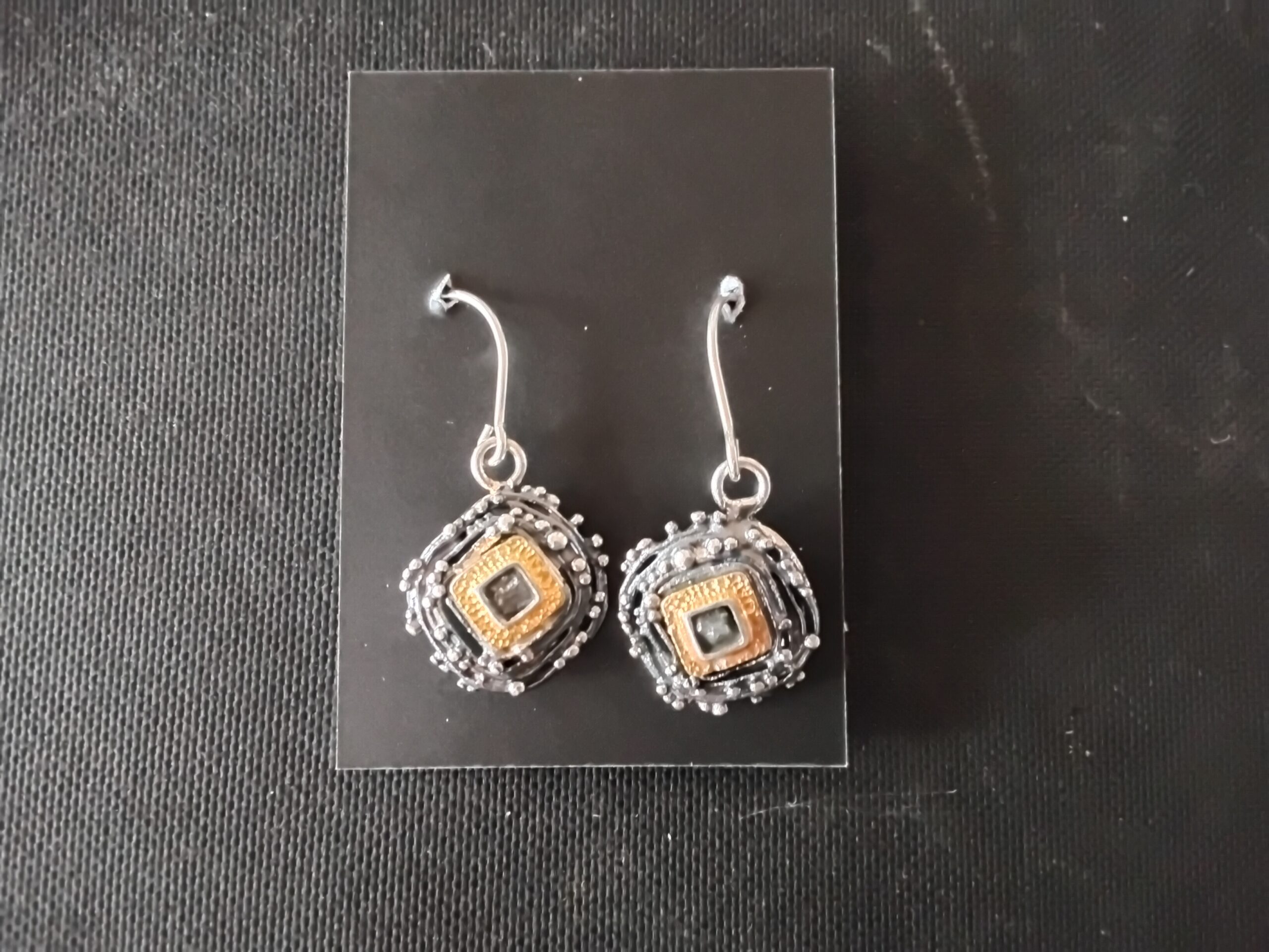 Ohrhänger Silber teilplattiert und teilgeschwärzt mit Rohdiamant