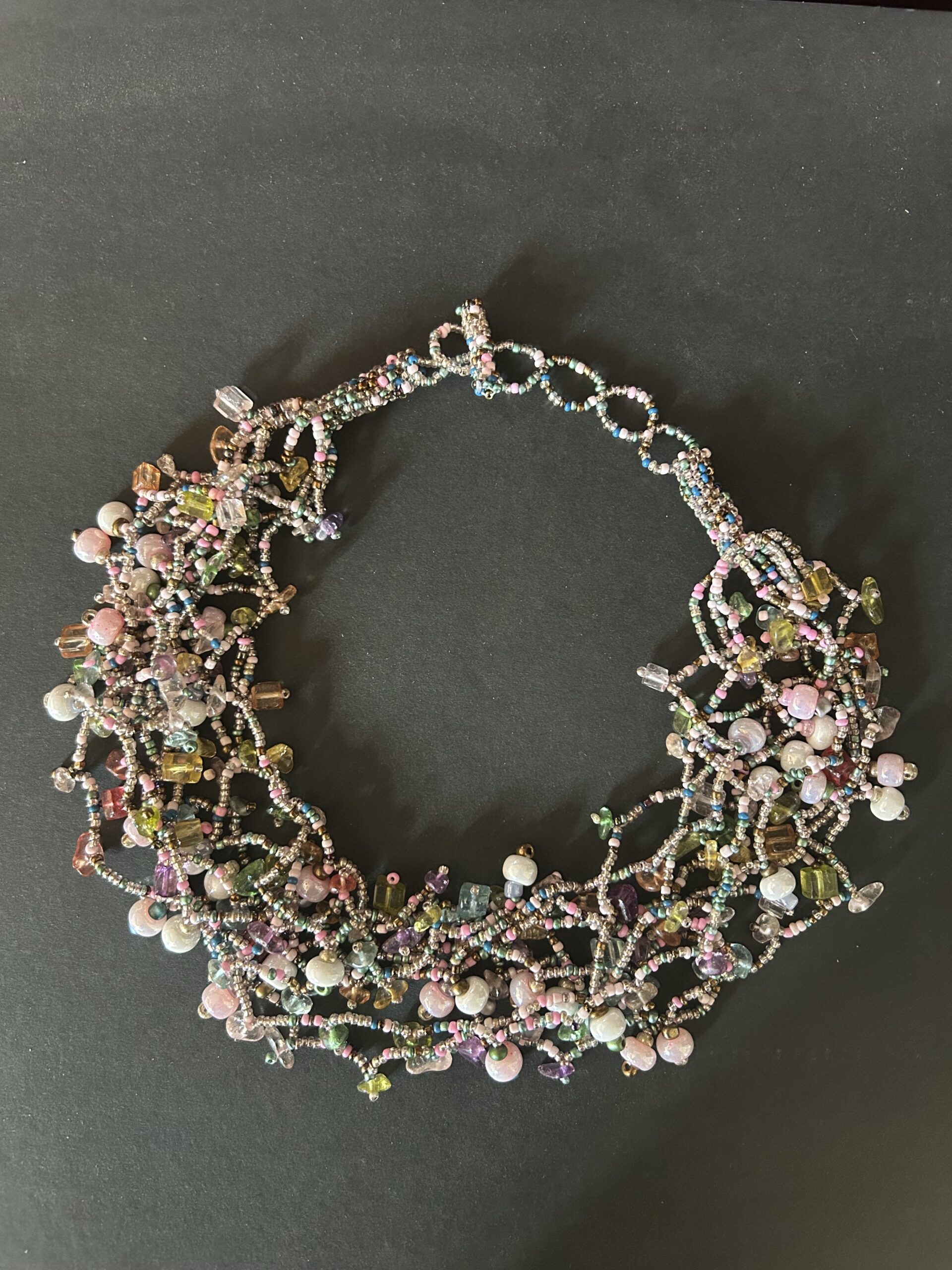 unikate Kette, ca 52 cm lang aus Glas und vielen unterschiedlichen Steinen